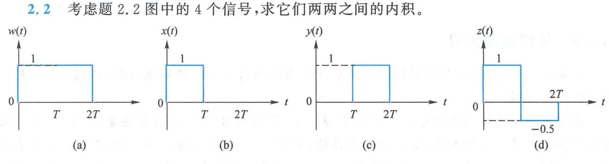 题目 2.2:考虑题 2.2 图中的 4 个信号,求它们两两之间的内积