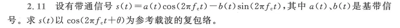 - 相对性 (复包络): 一个带通信号的复包络不是唯一的,它的具体形式取决于我们选择的参考载波。改变参考载波的初始相位(如此题中的