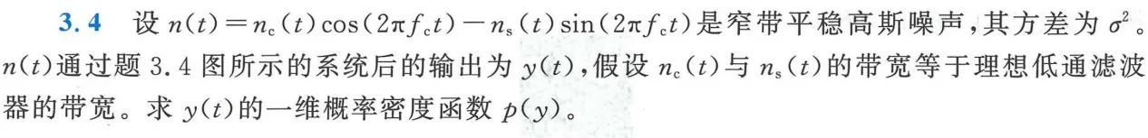 题目 3.1:设 Y(t) = X(t)cos(2πf_c t + θ),其中 X(t) 是零均值平稳过程,其自相关函数为 R_X(τ),功率谱密度为 P_X(f),θ 是与 X(t) 独立的、在 [0, 2π] 上均匀分布的随机变量。求 Y(t) 的均值、平均自相关函数、功率谱密度