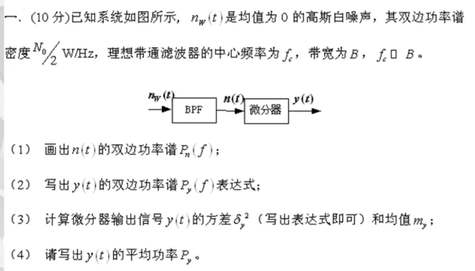 (4) 求 t0 时刻输出的信号功率 S 和噪声功率 N, 及 S/N